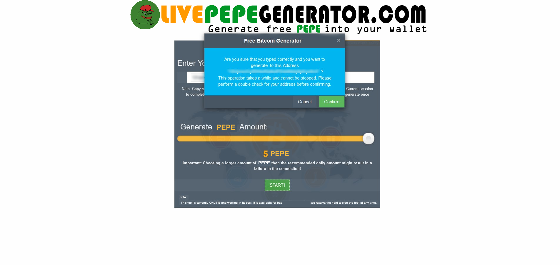 Live PEPE Generator made that possible, generating a small quantity to